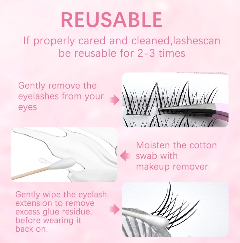 • Lông mi sẵn keo có thể tái sử dụng có thể được sử dụng nhiều lần nếu sử dụng và bảo quản đúng cách.